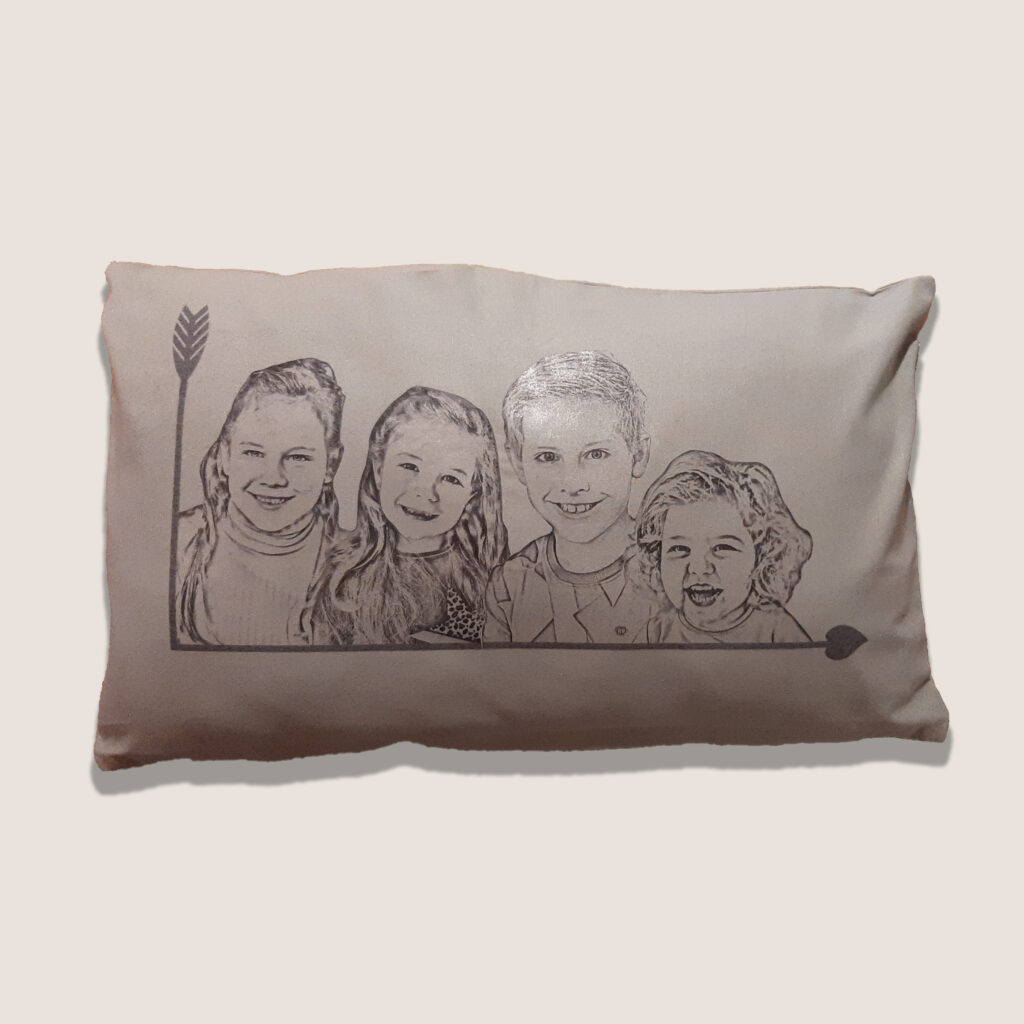 Een kussentje met eigen portret, een borrelplank met eigen (handgeschreven) tekst of bedankje voor een grotere groep. Laat me weten wat je zoekt en ik denk graag met je mee.